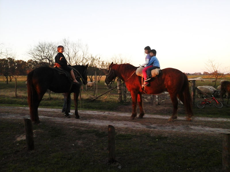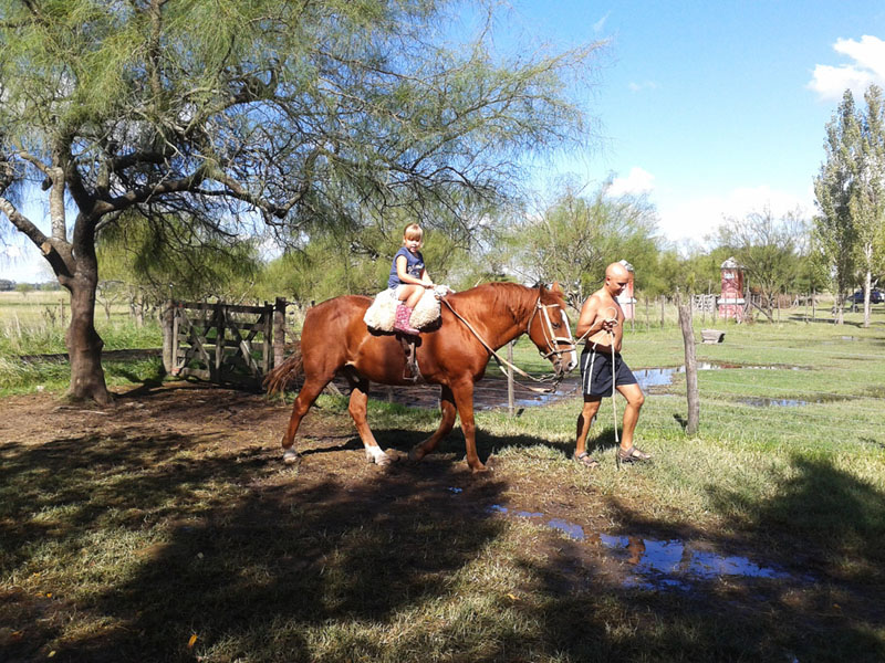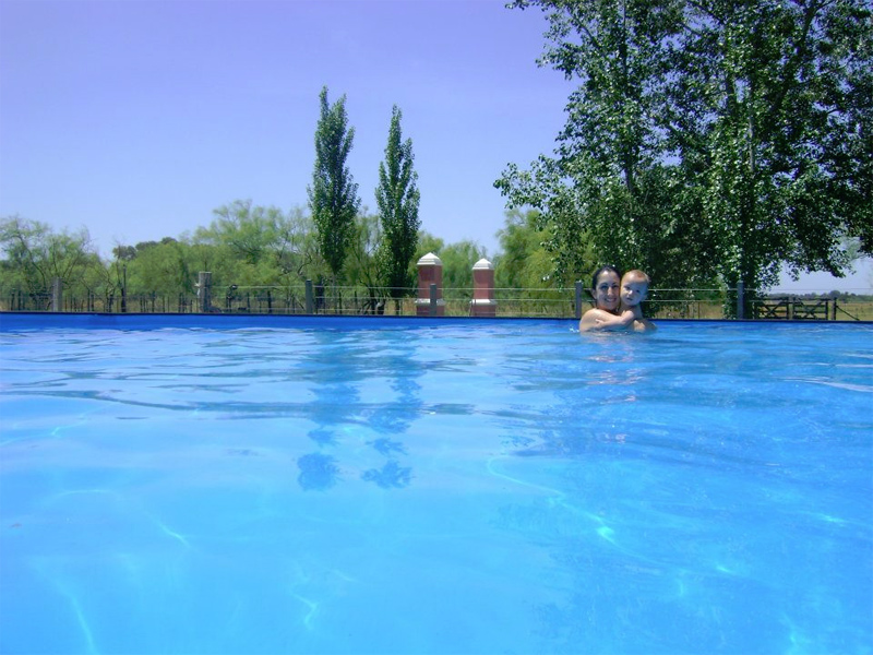 Dentro de la estancia: Disfrute de su serenidad rodeado de verde, silencio y aire puro. Visite la producción ganadera, contemple las aves silvestres, relájese en la pileta y, por sobre todo, descanse todo lo posible.